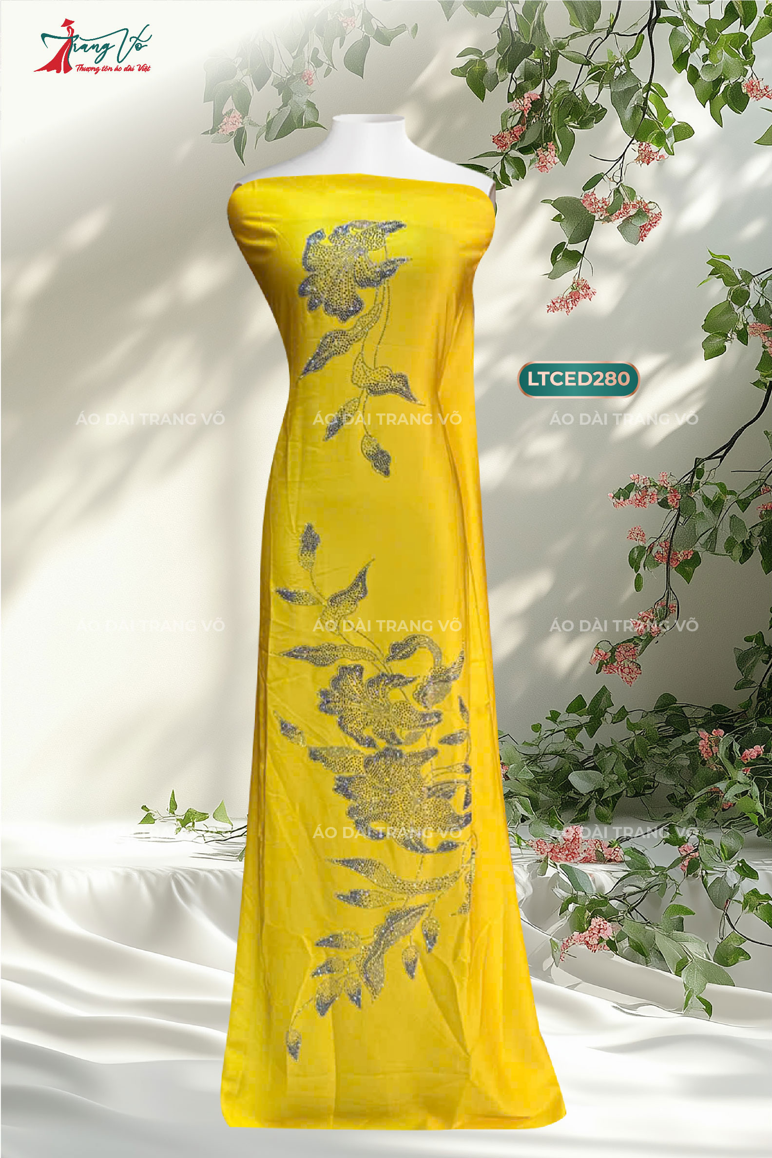 Với chất liệu Lụa Tô Châu cao cấp và chi tiét hoa thêu tay tinh xảo, mẫu vải này mang đến vẻ đẹp sang trọng, nổi bật với hiệu ứng pha lê lấp lánh.
