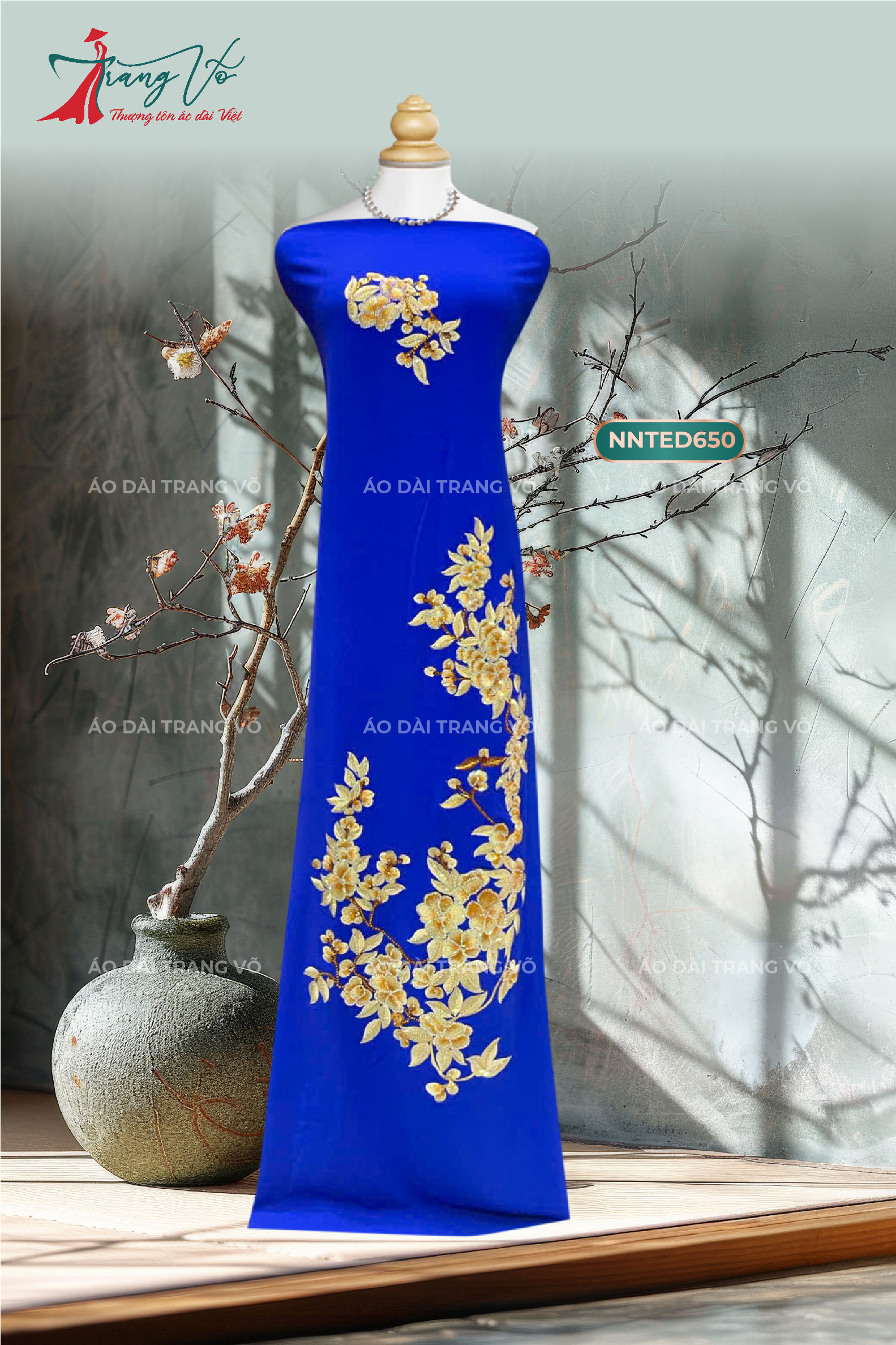 Nhung Nhật là dòng vải cao cấp với bề mặt mịn màng, độ bóng sang trọng và cảm giác mềm mại khi chạm tay. Chất vải có độ dày vừa phải, giữ ấm tốt nhưng vẫn thoáng khí, giúp áo dài giữ được form dáng thanh lịch mà không bị nặng nề.