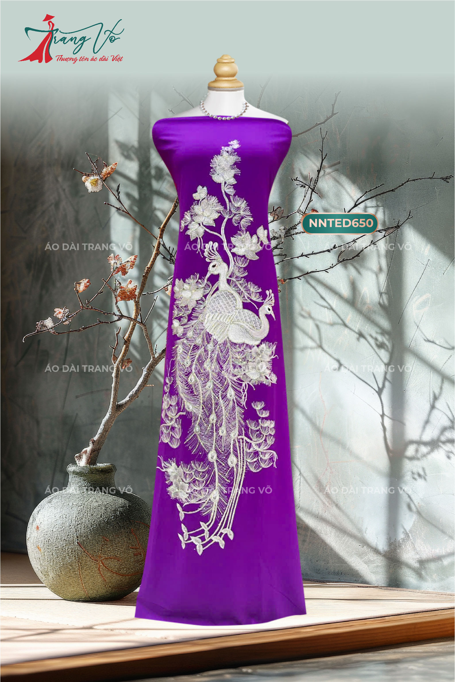 Sự kết hợp giữa chất liệu nhung cao cấp, kỹ thuật vẽ tay điêu luyện và đính kết tinh xảo tạo nên những mẫu áo dài vừa sang trọng, vừa độc đáo. Thiết kế này giúp người mặc tỏa sáng trong những sự kiện quan trọng, toát lên vẻ quý phái và đẳng cấp.