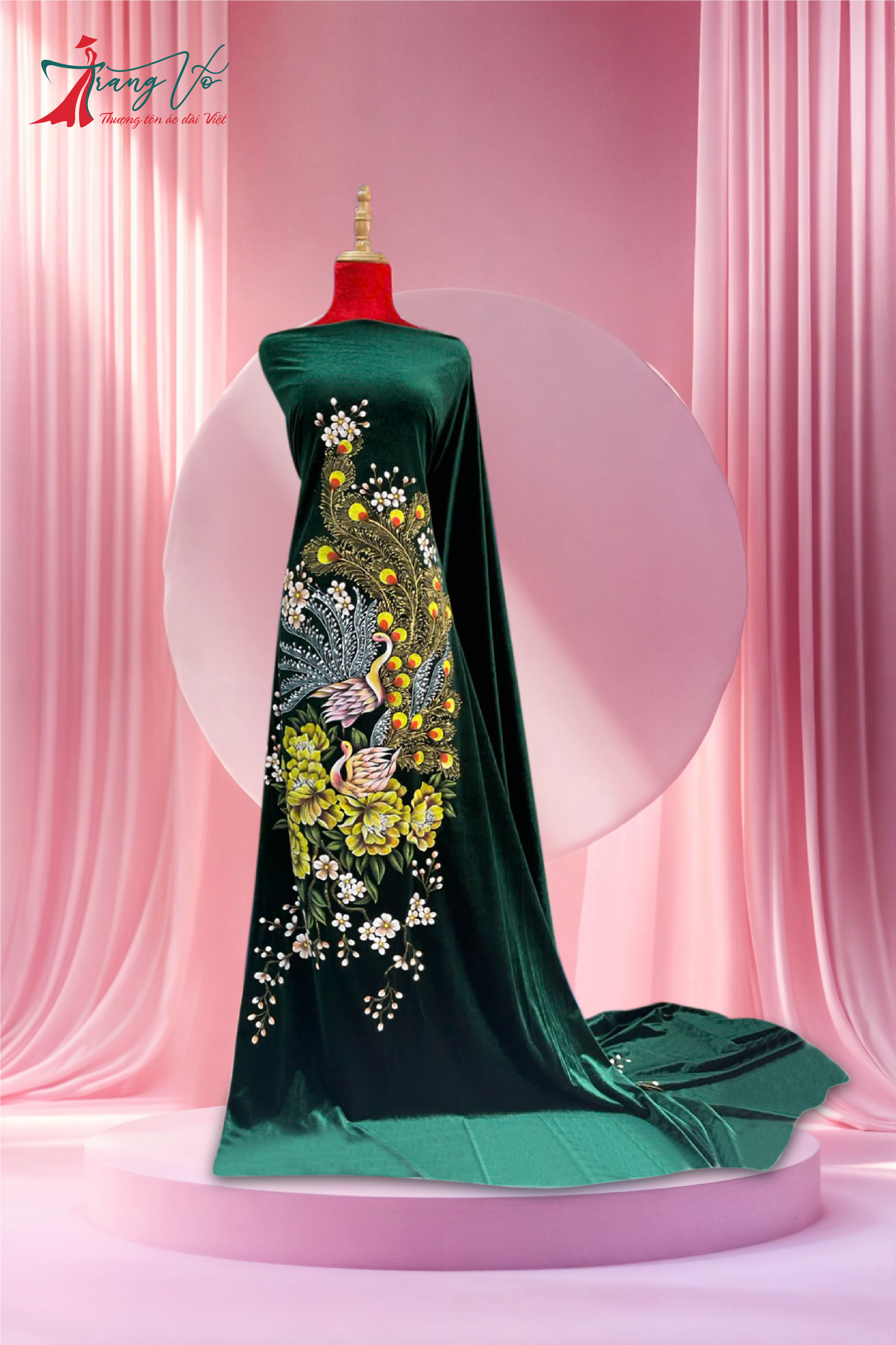 NHUNG TUYẾT THÊU HOA CÁCH ĐIỆU KẾT PHA LÊ XANH RÊU #02112403
