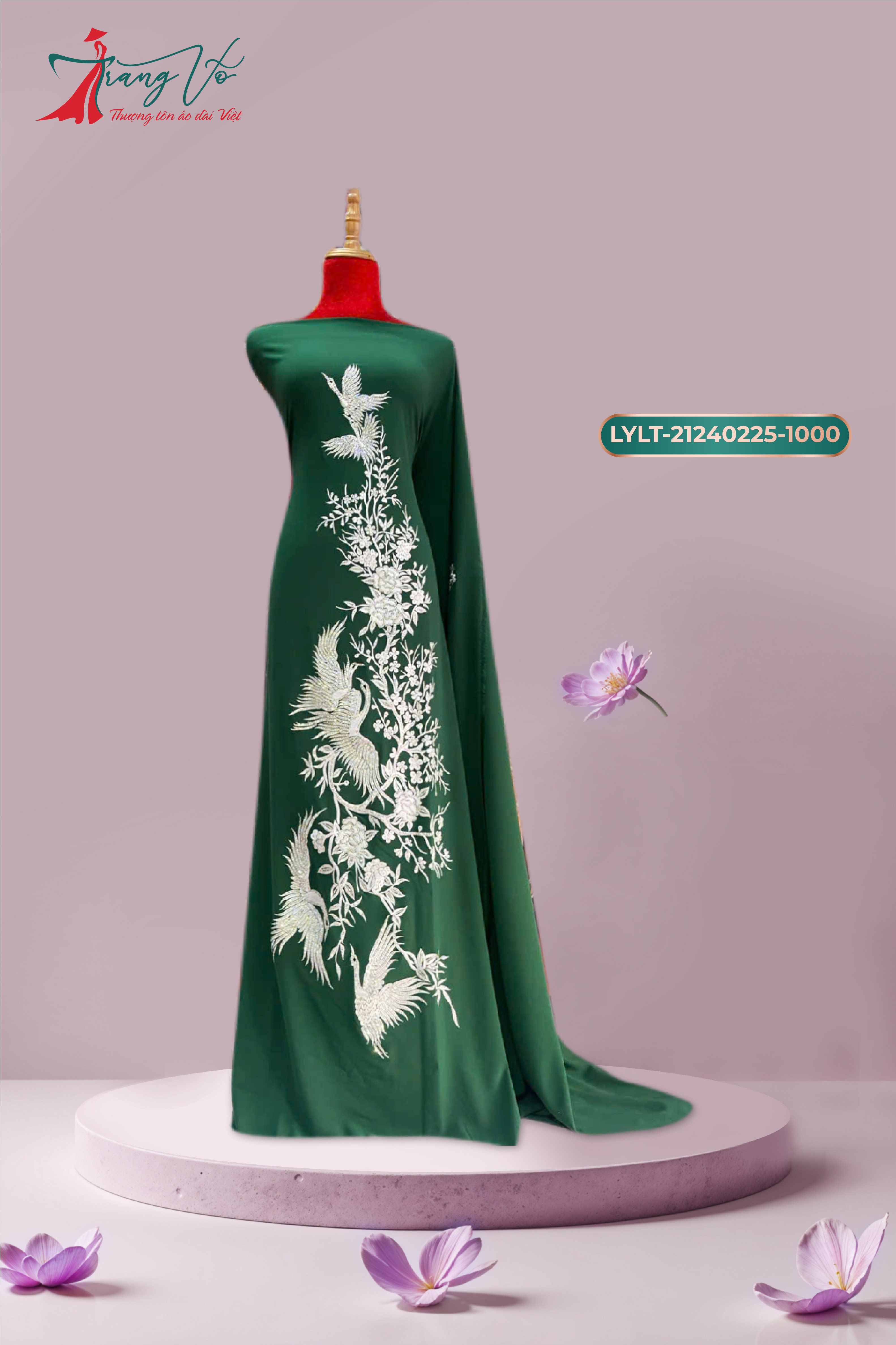 NHUNG TUYẾT THÊU HOA CÁCH ĐIỆU KẾT PHA LÊ XANH RÊU #02112403