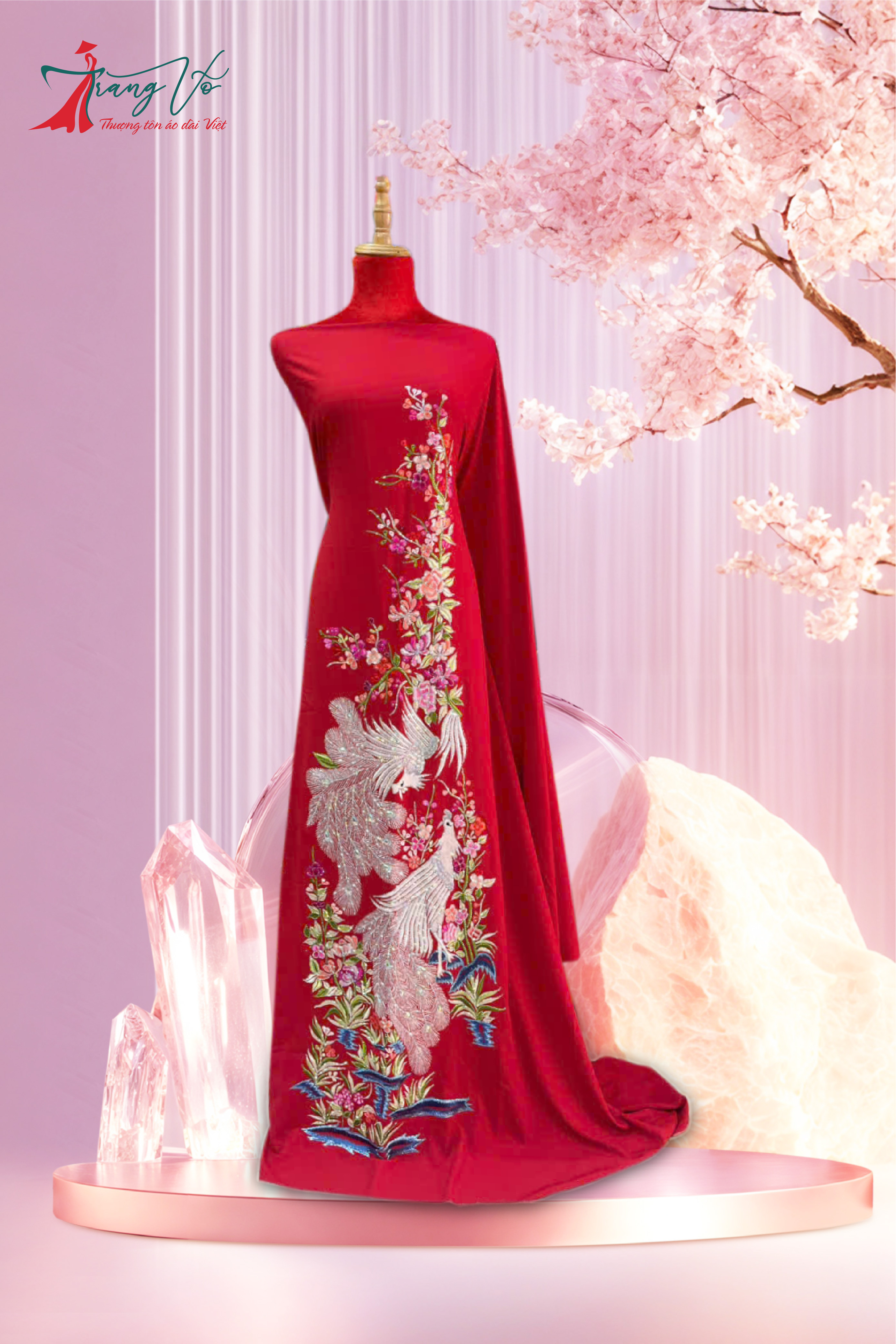 NHUNG TUYẾT THÊU KẾT PHA LÊ HỌA TIẾT CHIM CÔNG #02112401