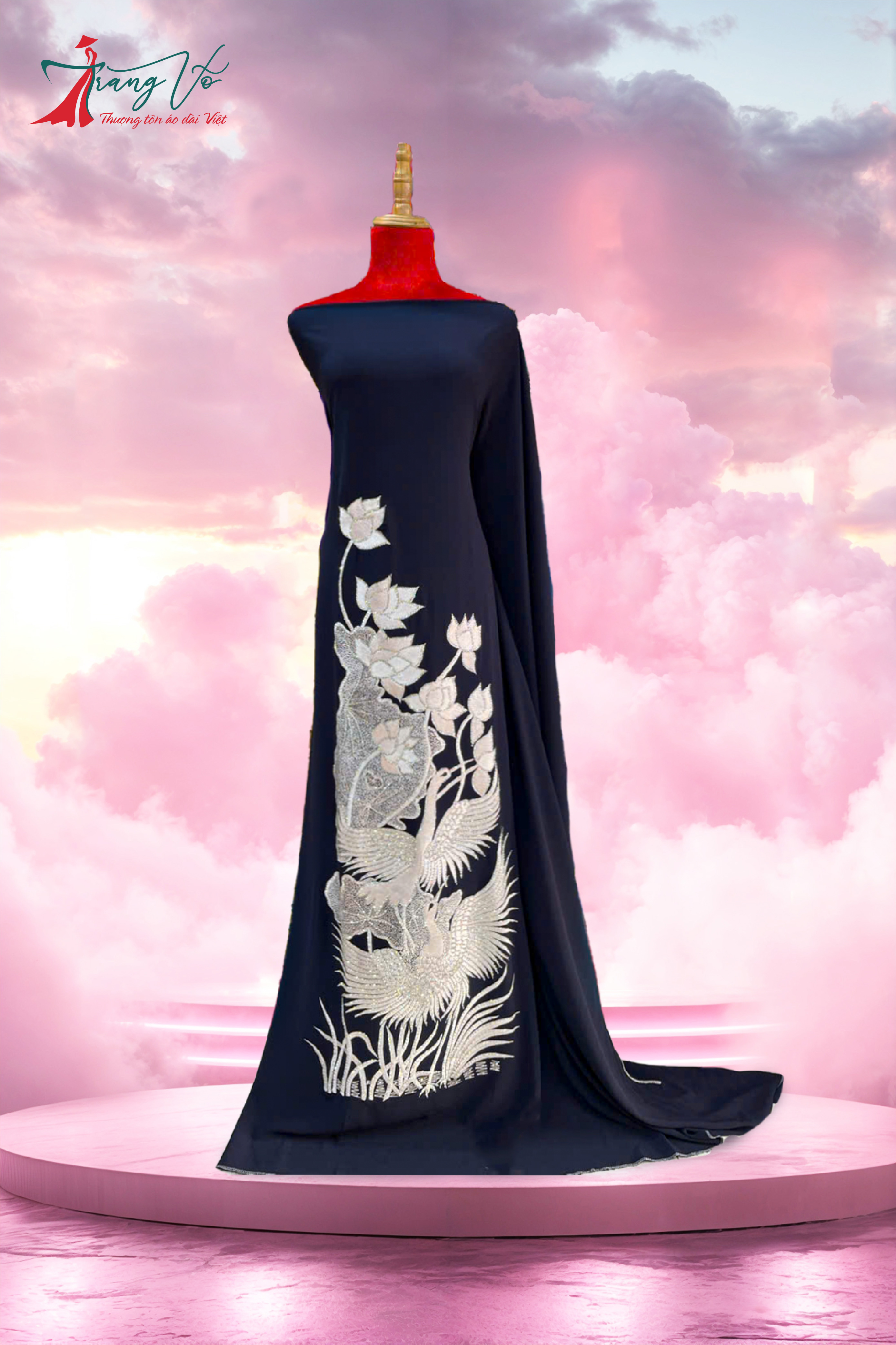 - Hoa văn thêu thủ công ép đá Swarovski cao cấp