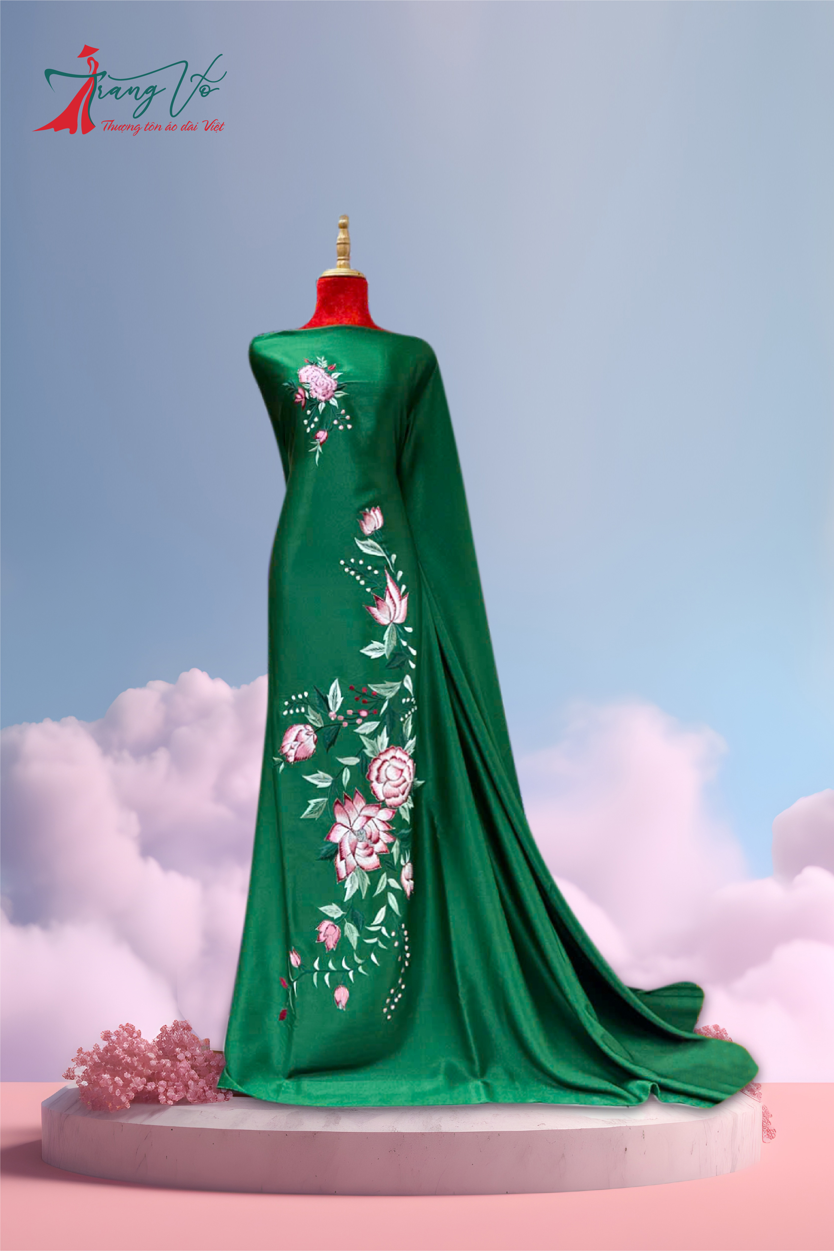 NHUNG TUYẾT THÊU HOA CÁCH ĐIỆU KẾT PHA LÊ XANH RÊU #02112403