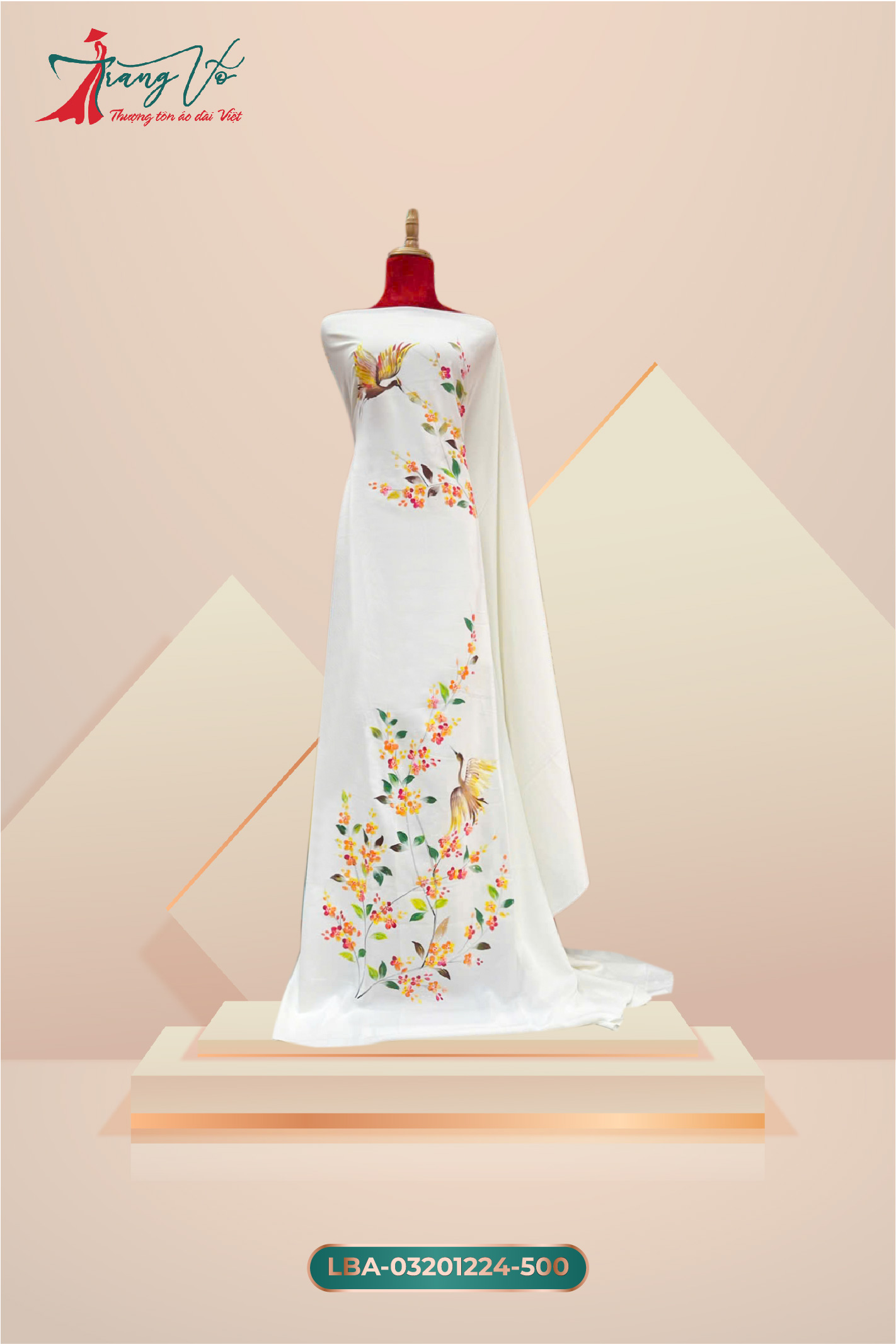 Sự kết hợp giữa chất liệu cao cấp, kỹ thuật vẽ tay họa tiết hoa điêu luyện và đính kết tinh xảo giúp áo dài trở thành một tác phẩm nghệ thuật đích thực. Thiết kế mang đến vẻ đẹp truyền thống nhưng vẫn rất thời trang, giúp người mặc tỏa sáng trong mọi dịp quan trọng.