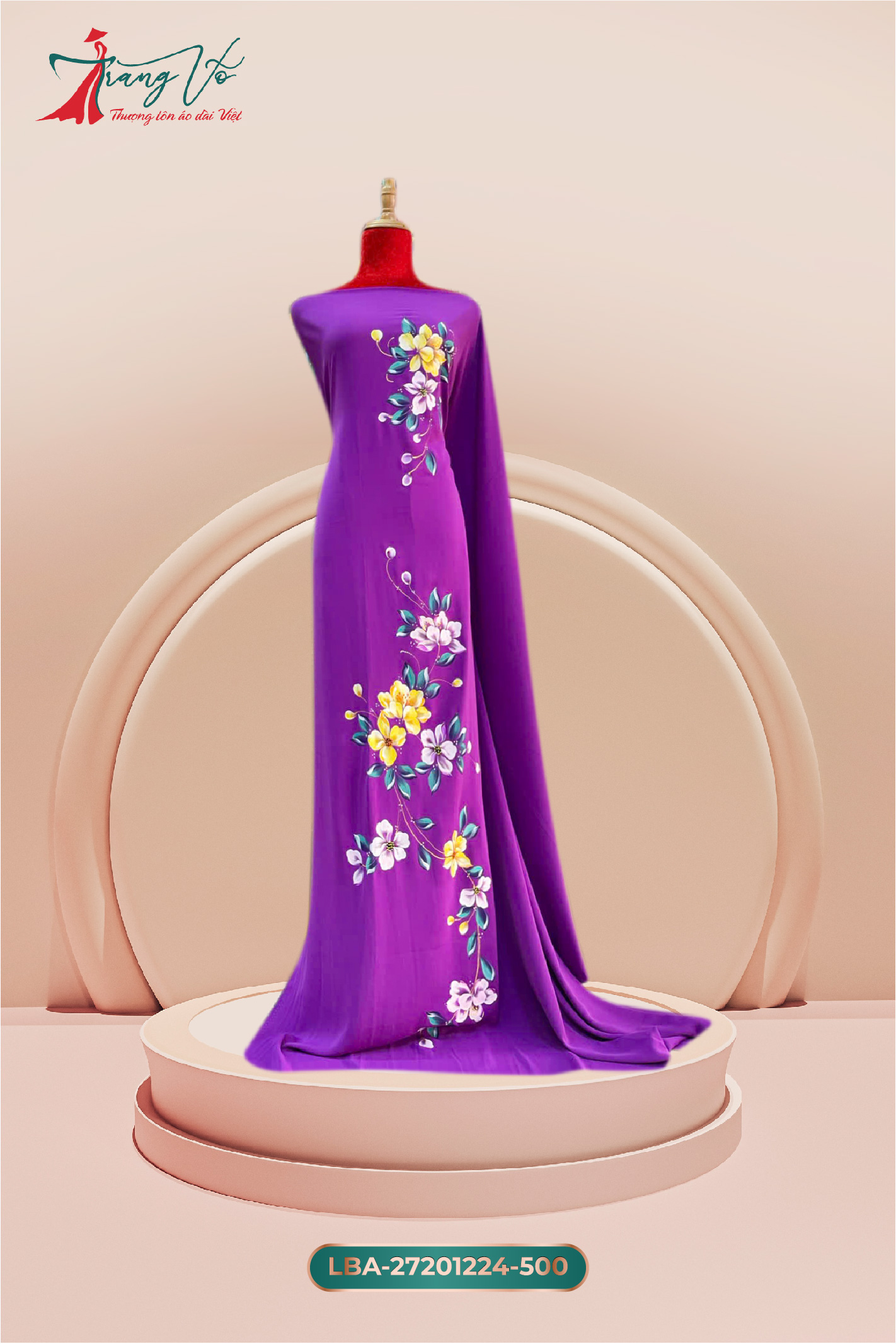 Sự kết hợp giữa chất liệu cao cấp, kỹ thuật vẽ tay họa tiết hoa điêu luyện và đính kết tinh xảo giúp áo dài trở thành một tác phẩm nghệ thuật đích thực. Thiết kế mang đến vẻ đẹp truyền thống nhưng vẫn rất thời trang, giúp người mặc tỏa sáng trong mọi dịp quan trọng.