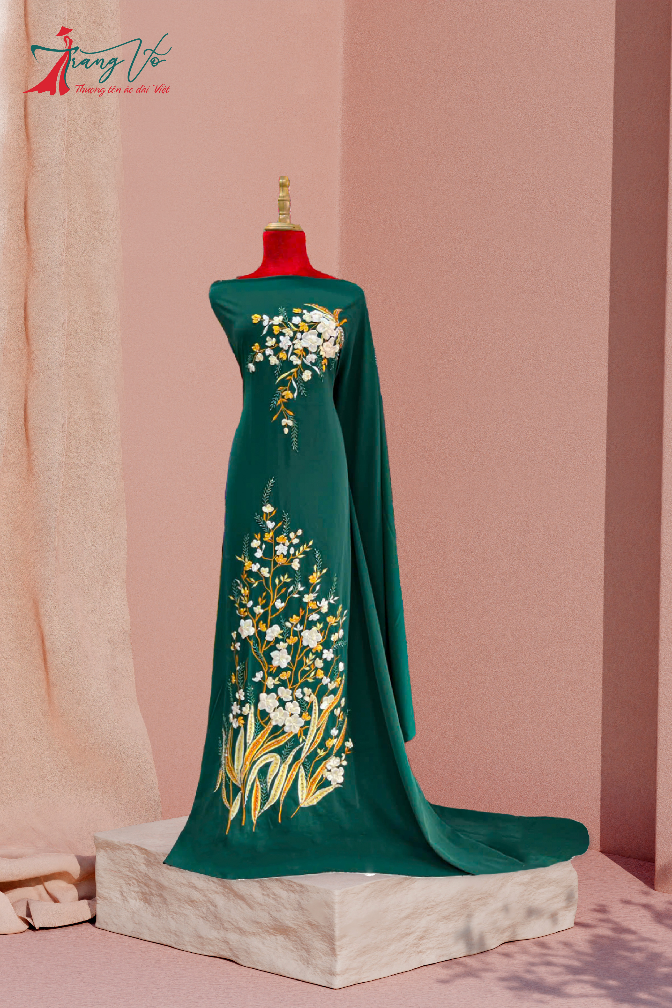 NHUNG TUYẾT THÊU HOA CÁCH ĐIỆU KẾT PHA LÊ XANH RÊU #02112403