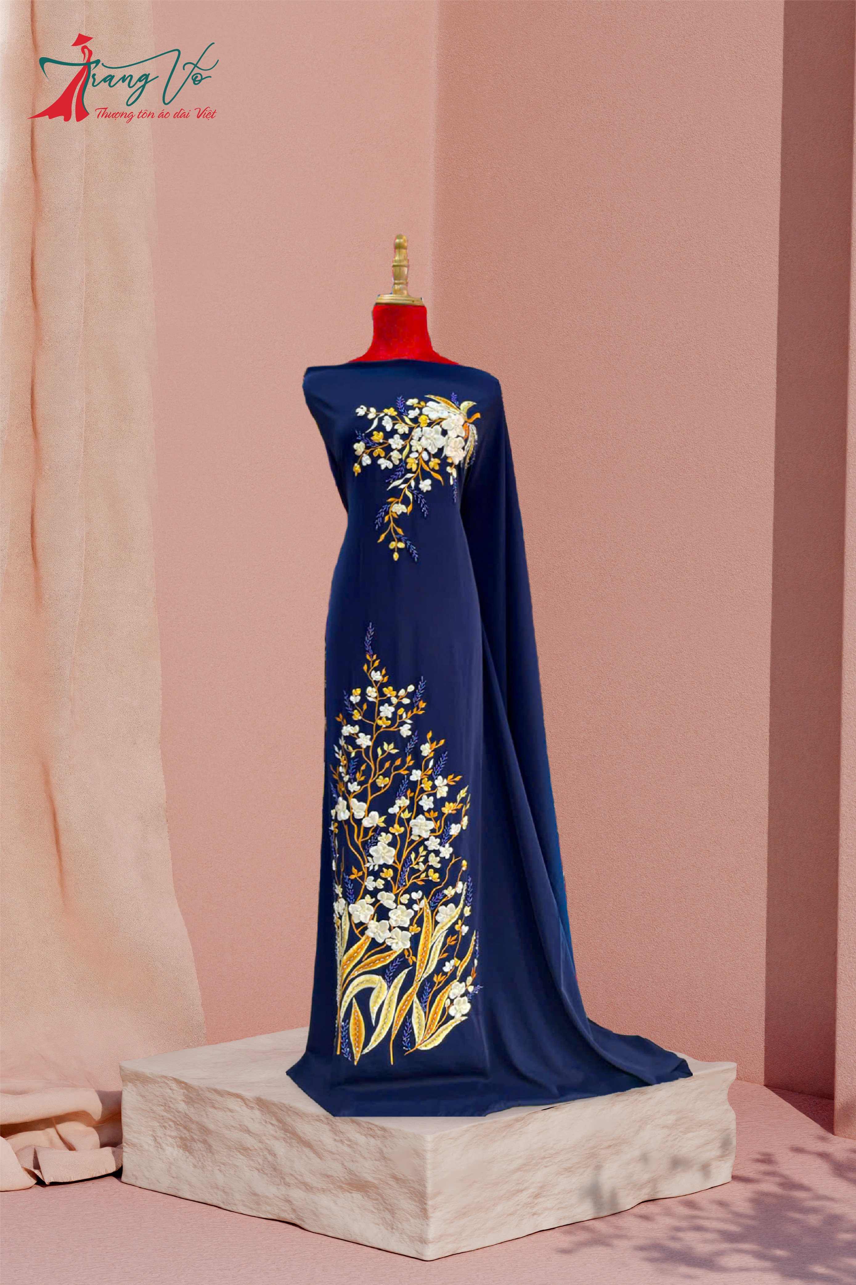 Chất liệu lụa mềm mại mang đến cảm giác nhẹ nhàng và thoải mái, kết hợp với hoa văn thêu tinh tế và ruy băng đầy màu sắc, tạo nên một vẻ đẹp vừa thanh lịch, vừa nổi bật.