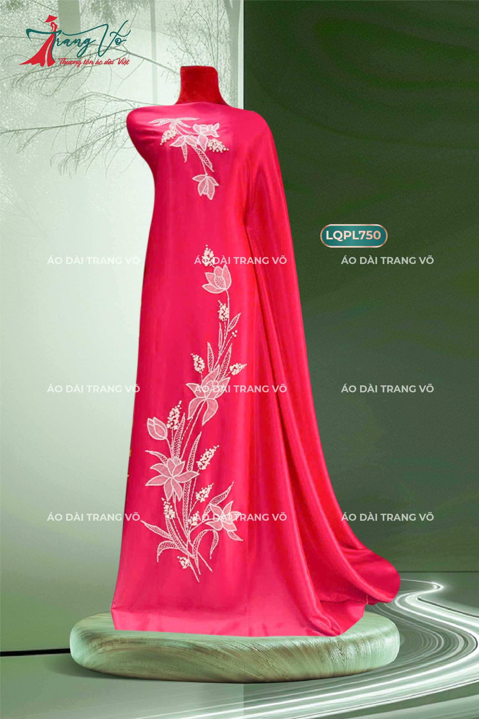 Với chất liệu Lụa Quen cao cấp và hoa văn thêu tay tinh xảo, mẫu vải này mang đến vẻ đẹp sang trọng, nổi bật với hiệu ứng pha lê lấp lánh.