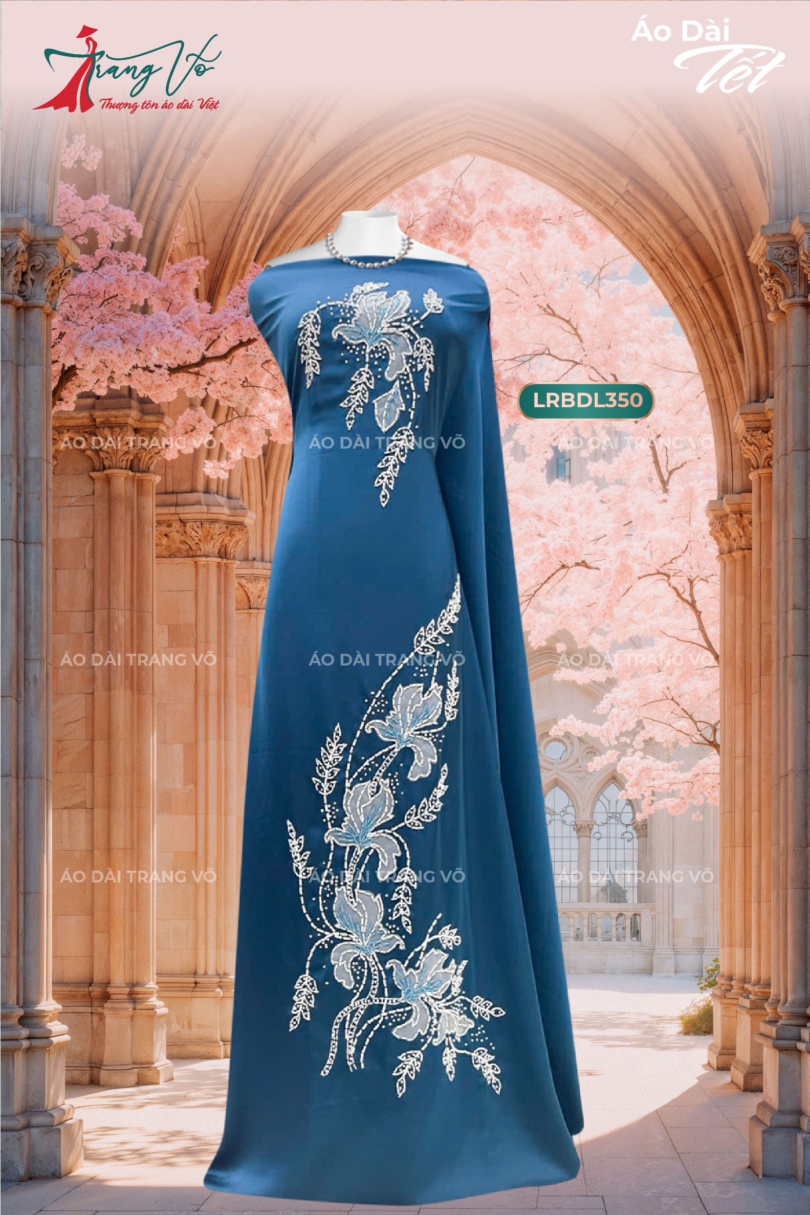 Áo dài được thêu tay tỉ mỉ đến từng chi tiết mang vẻ đẹp mềm mại, tinh tế và đầy nghệ thuật. Mỗi bông hoa đều được chăm chút tỉ mỉ, tạo chiều sâu và độ chân thực cao. Màu sắc của họa tiết được phối hài hòa, giúp áo dài có chiều sâu và nổi bật hơn khi mặc.