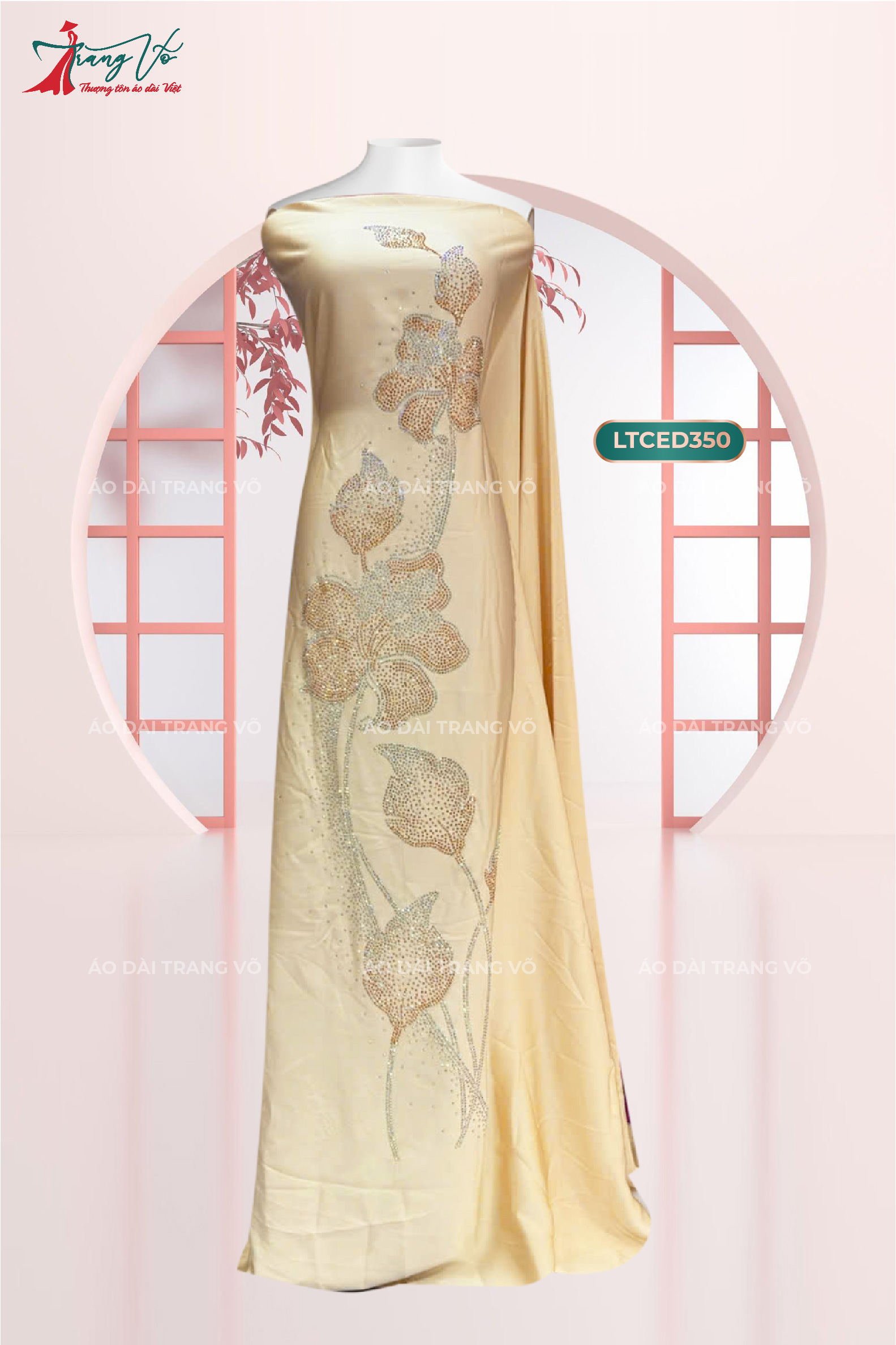 Với chất liệu Lụa Tô Châu cao cấp và chi tiét hoa thêu tay tinh xảo, mẫu vải này mang đến vẻ đẹp sang trọng, nổi bật với hiệu ứng pha lê lấp lánh.