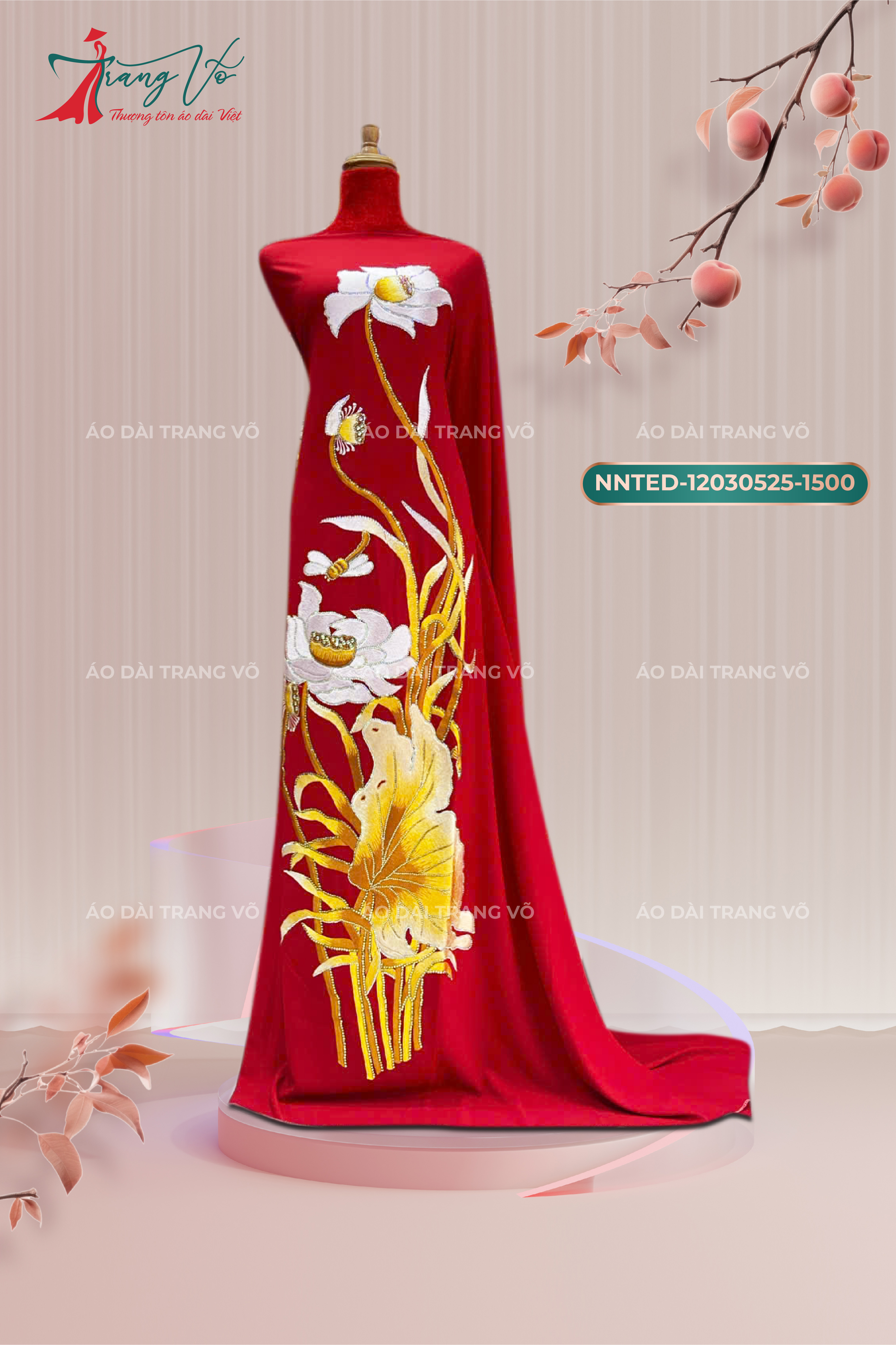 Sự kết hợp giữa chất liệu nhung cao cấp, kỹ thuật vẽ tay điêu luyện và đính kết tinh xảo tạo nên những mẫu áo dài vừa sang trọng, vừa độc đáo. Thiết kế này giúp người mặc tỏa sáng trong những sự kiện quan trọng, toát lên vẻ quý phái và đẳng cấp.