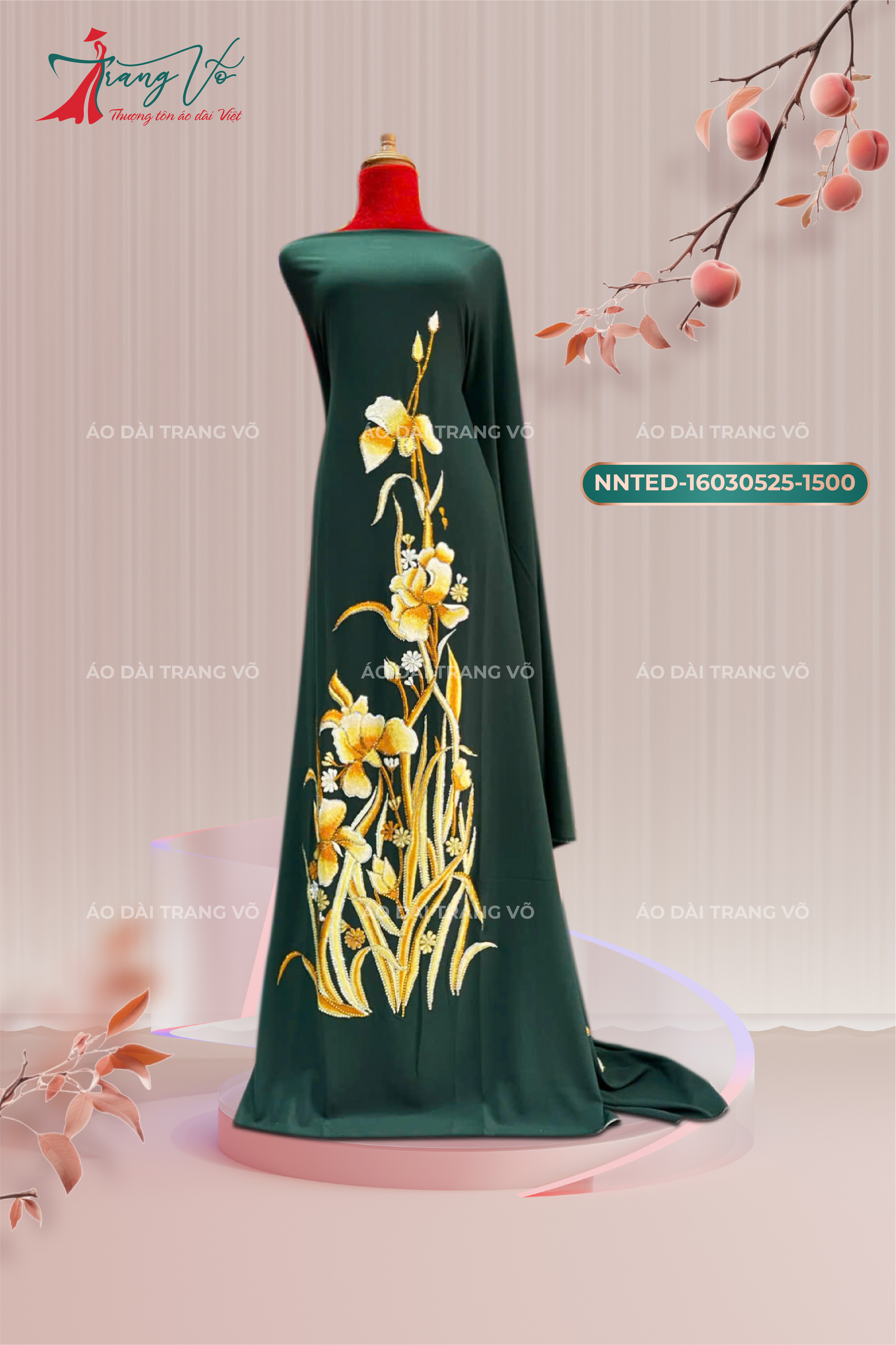 Sự kết hợp giữa chất liệu nhung cao cấp, kỹ thuật vẽ tay điêu luyện và đính kết tinh xảo tạo nên những mẫu áo dài vừa sang trọng, vừa độc đáo. Thiết kế này giúp người mặc tỏa sáng trong những sự kiện quan trọng, toát lên vẻ quý phái và đẳng cấp.
