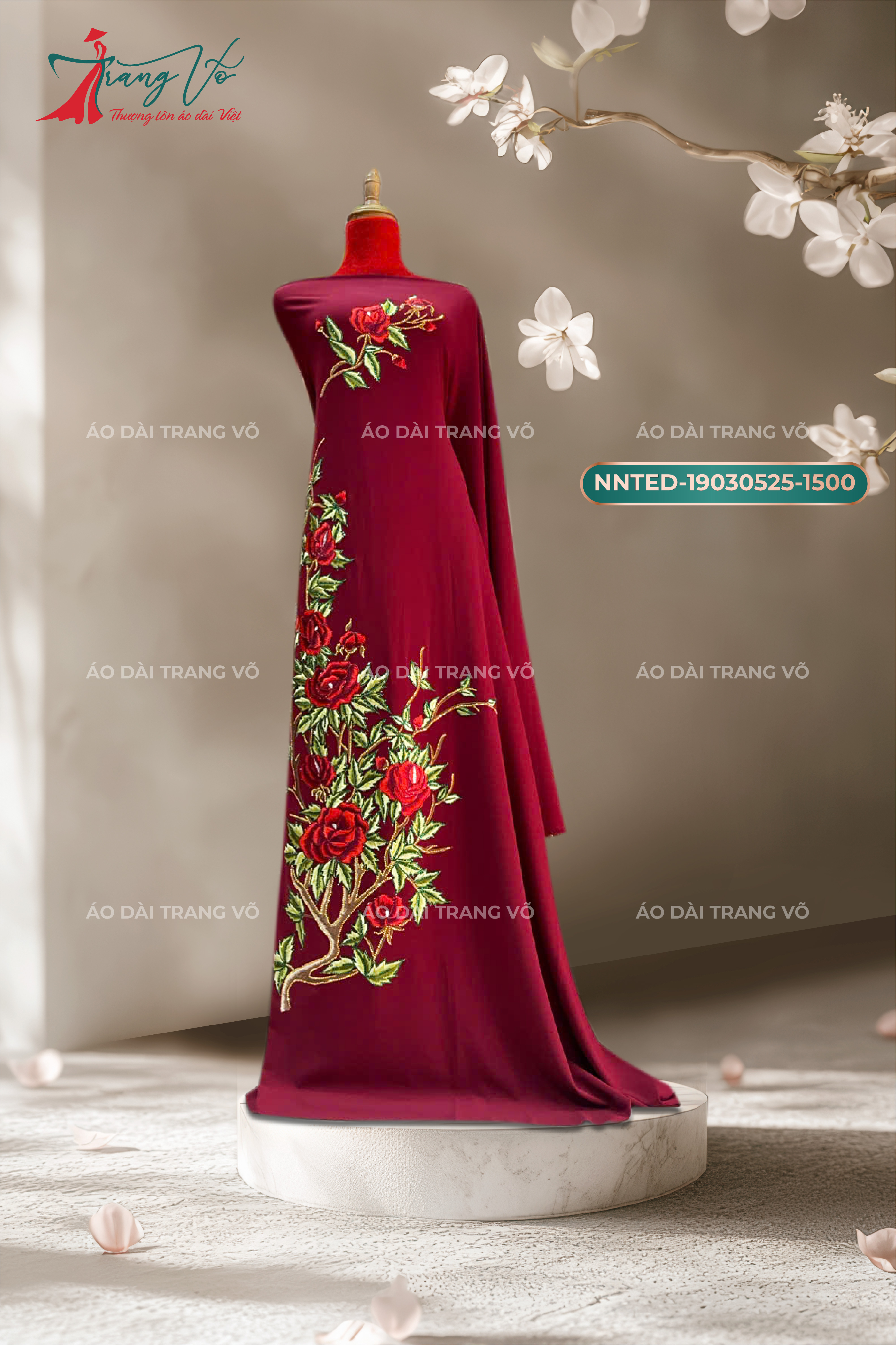 Nhung Nhật là dòng vải cao cấp với bề mặt mịn màng, độ bóng sang trọng và cảm giác mềm mại khi chạm tay. Chất vải có độ dày vừa phải, giữ ấm tốt nhưng vẫn thoáng khí, giúp áo dài giữ được form dáng thanh lịch mà không bị nặng nề.