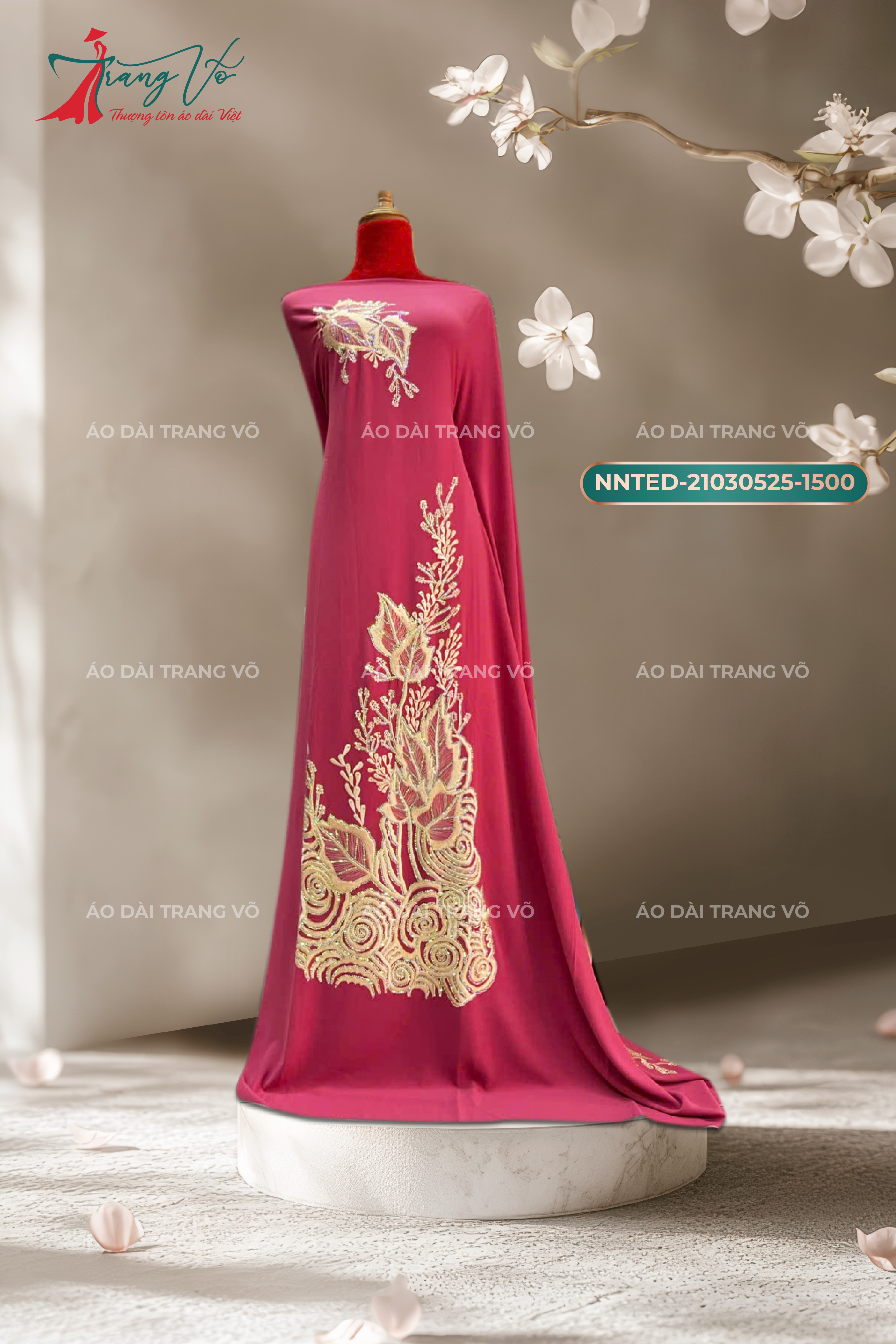 Nhung Nhật là dòng vải cao cấp với bề mặt mịn màng, độ bóng sang trọng và cảm giác mềm mại khi chạm tay. Chất vải có độ dày vừa phải, giữ ấm tốt nhưng vẫn thoáng khí, giúp áo dài giữ được form dáng thanh lịch mà không bị nặng nề.