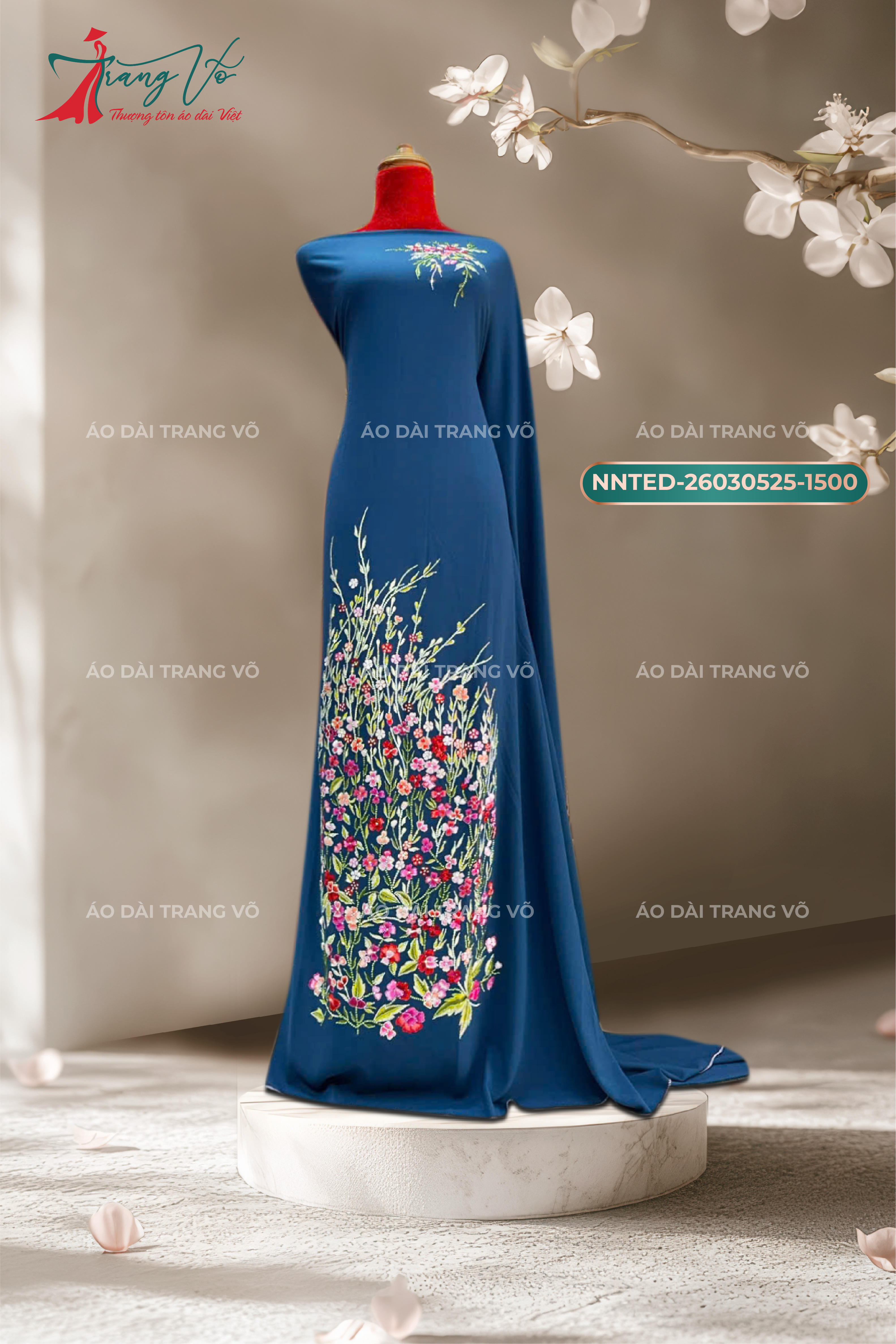 Sự kết hợp giữa chất liệu nhung cao cấp, kỹ thuật vẽ tay điêu luyện và đính kết tinh xảo tạo nên những mẫu áo dài vừa sang trọng, vừa độc đáo. Thiết kế này giúp người mặc tỏa sáng trong những sự kiện quan trọng, toát lên vẻ quý phái và đẳng cấp.