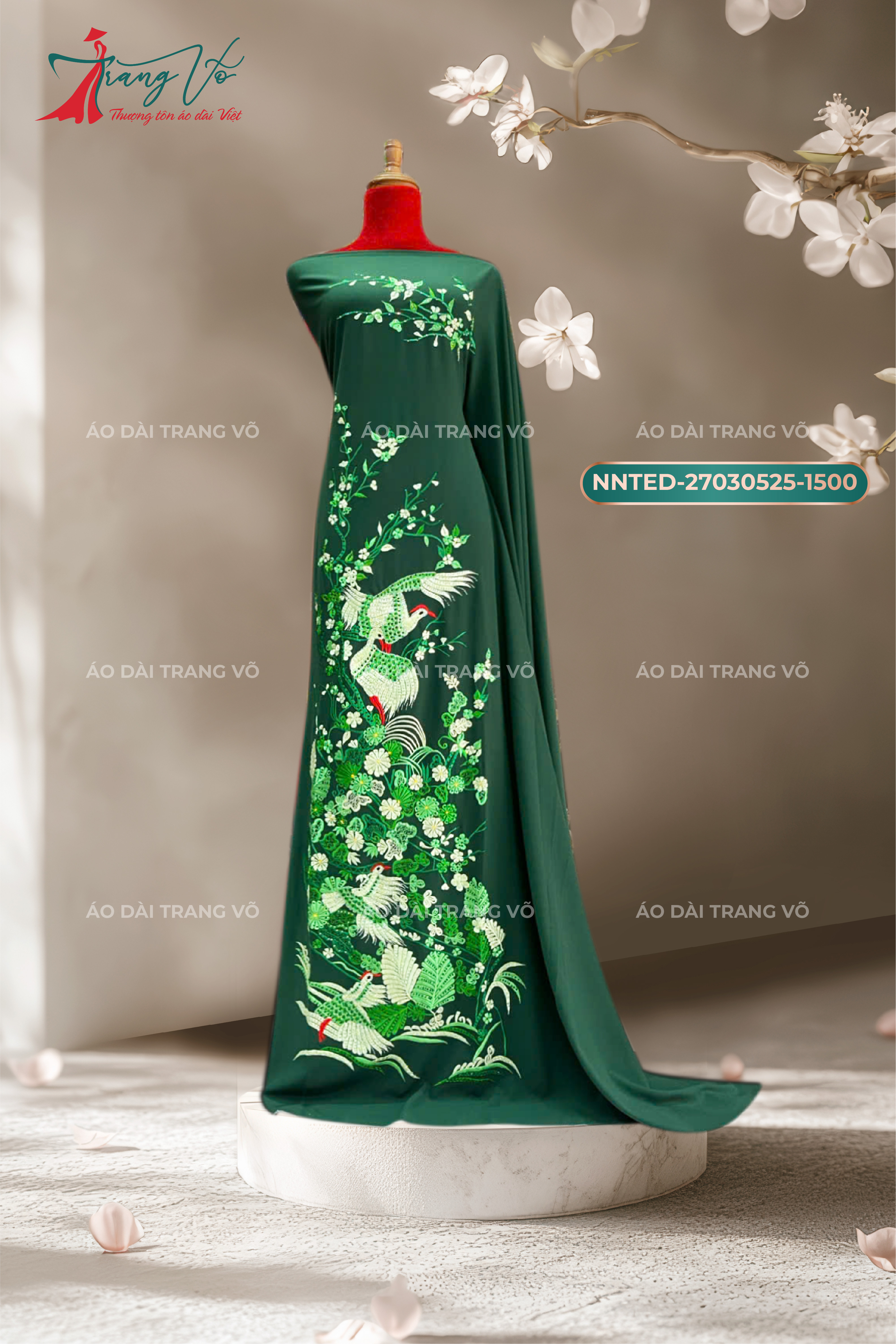 NHUNG TUYẾT THÊU HOA CÁCH ĐIỆU KẾT PHA LÊ XANH RÊU #02112403