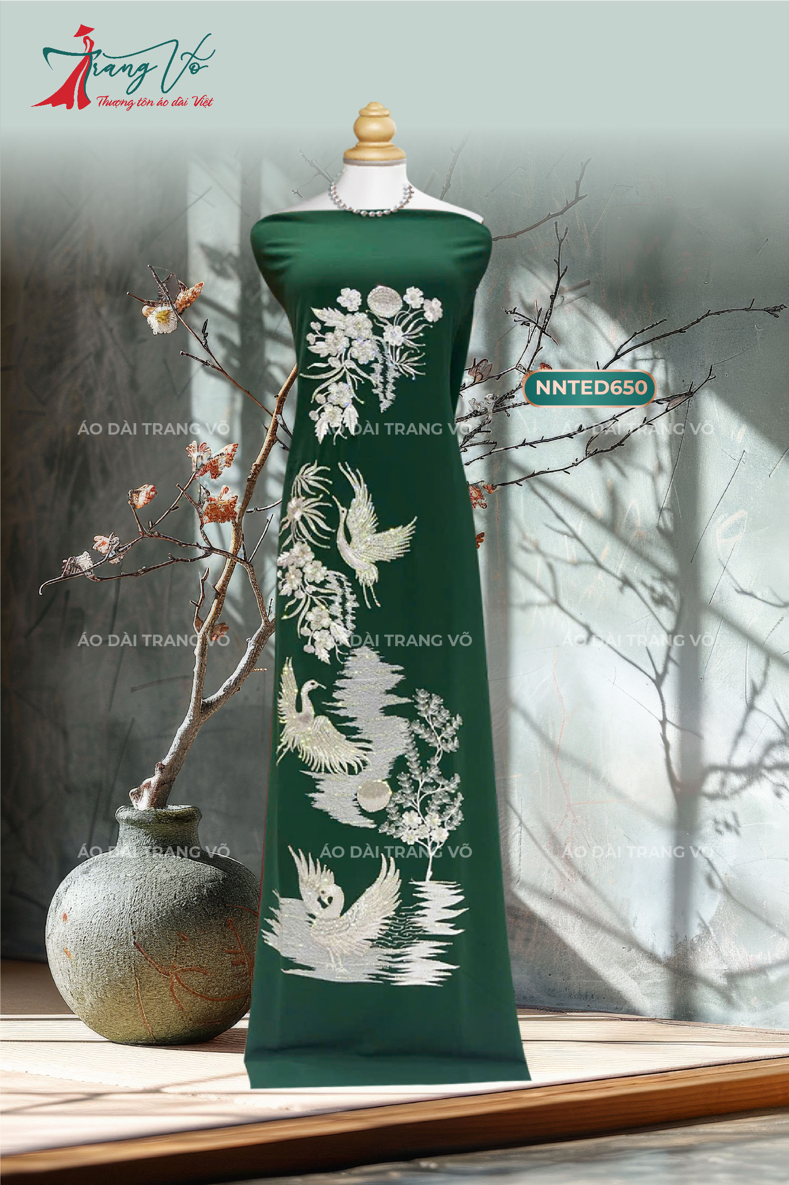 Sự kết hợp giữa chất liệu nhung cao cấp, kỹ thuật vẽ tay điêu luyện và đính kết tinh xảo tạo nên những mẫu áo dài vừa sang trọng, vừa độc đáo. Thiết kế này giúp người mặc tỏa sáng trong những sự kiện quan trọng, toát lên vẻ quý phái và đẳng cấp.