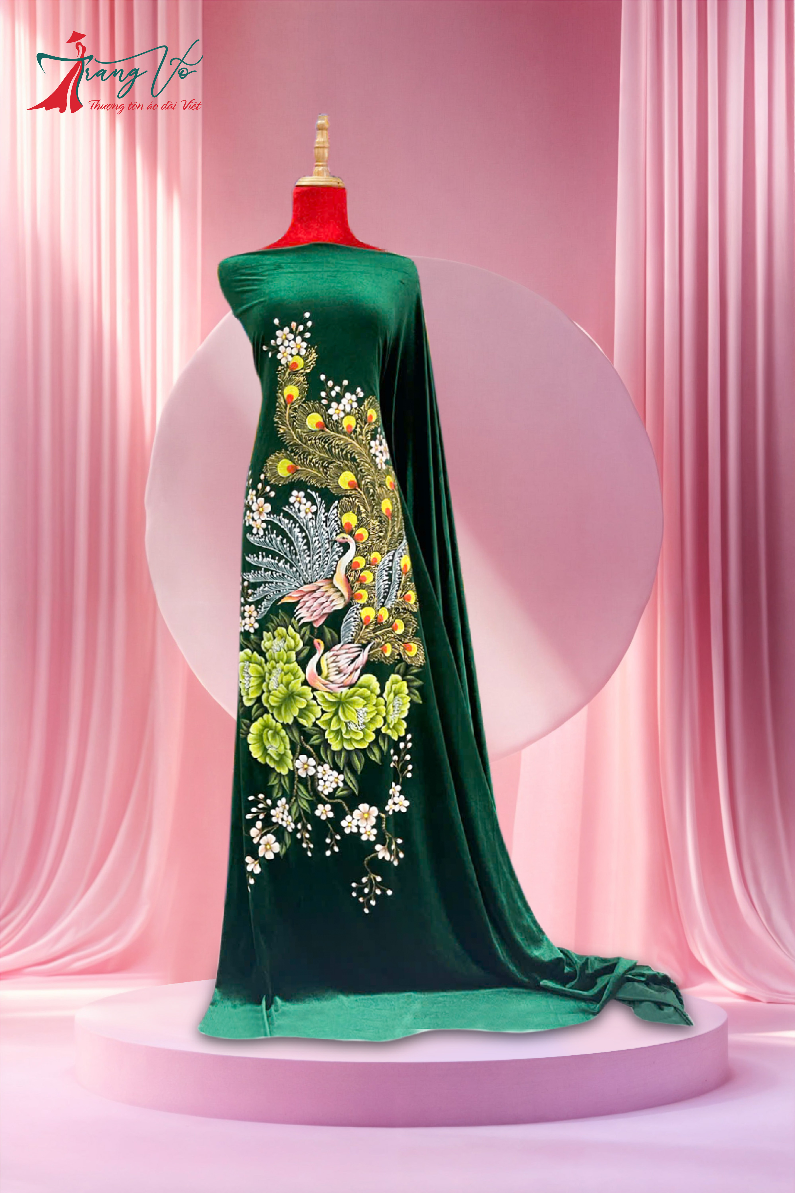 NHUNG TUYẾT THÊU KẾT PHA LÊ HỌA TIẾT CHIM CÔNG #02112401
