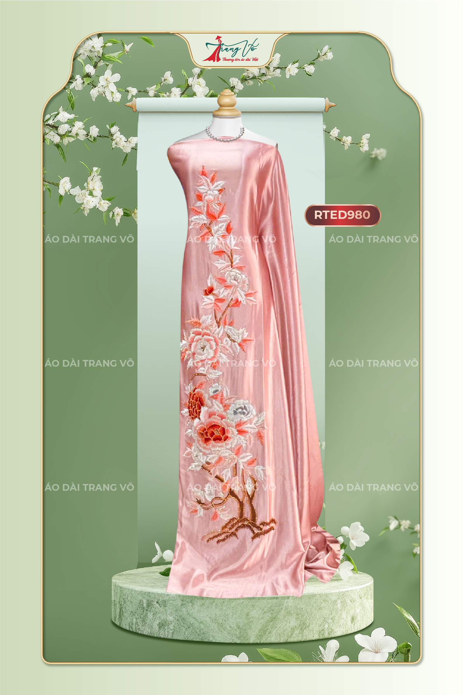 Áo dài được thêu tay tỉ mỉ đến từng chi tiết mang vẻ đẹp mềm mại, tinh tế và đầy nghệ thuật. Mỗi bông hoa đều được chăm chút tỉ mỉ, tạo chiều sâu và độ chân thực cao. Màu sắc của họa tiết được phối hài hòa, giúp áo dài có chiều sâu và nổi bật hơn khi mặc.
