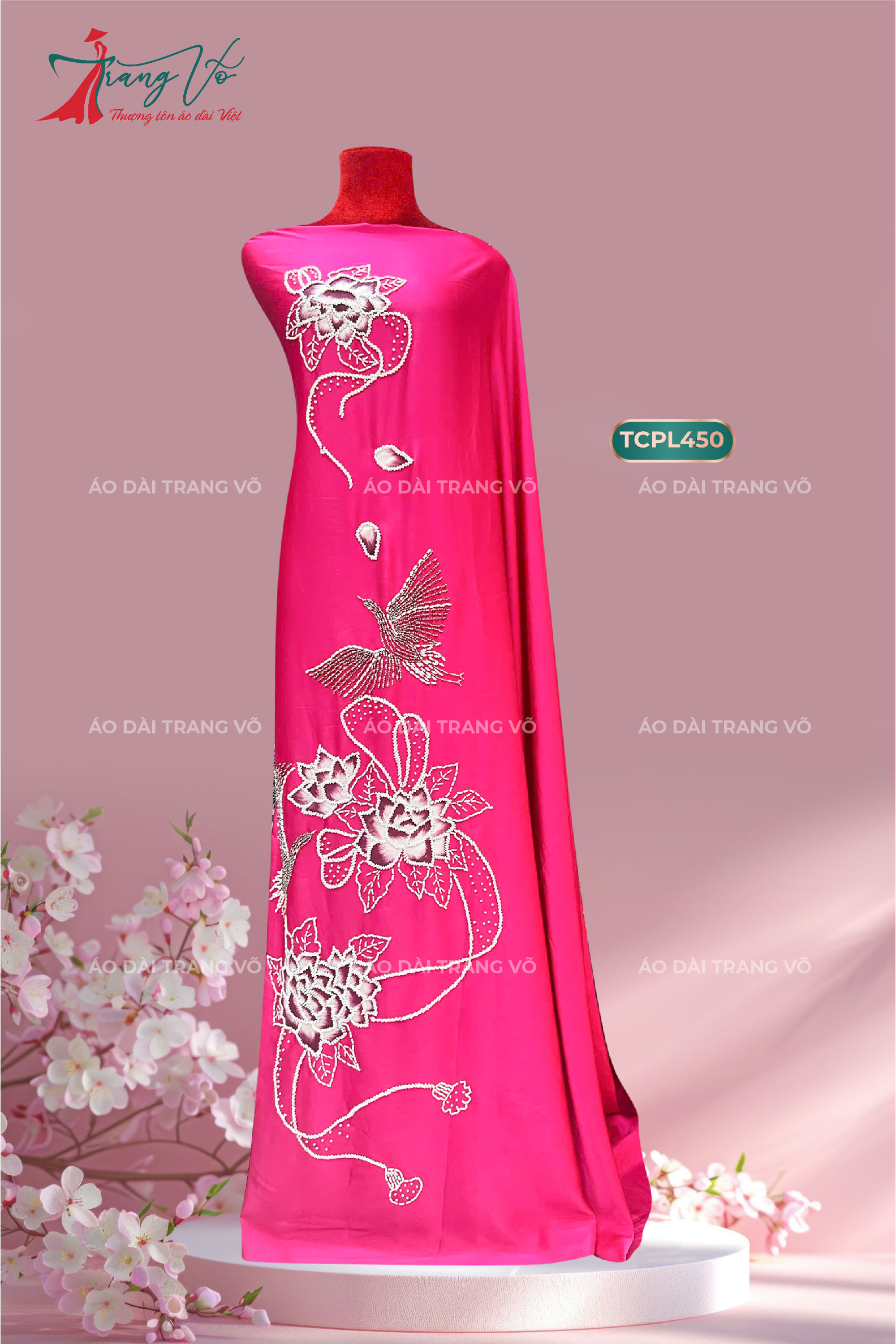 Với chất liệu Lụa Tô Châu cao cấp và chi tiét hoa thêu tay tinh xảo, mẫu vải này mang đến vẻ đẹp sang trọng, nổi bật với hiệu ứng pha lê lấp lánh.
