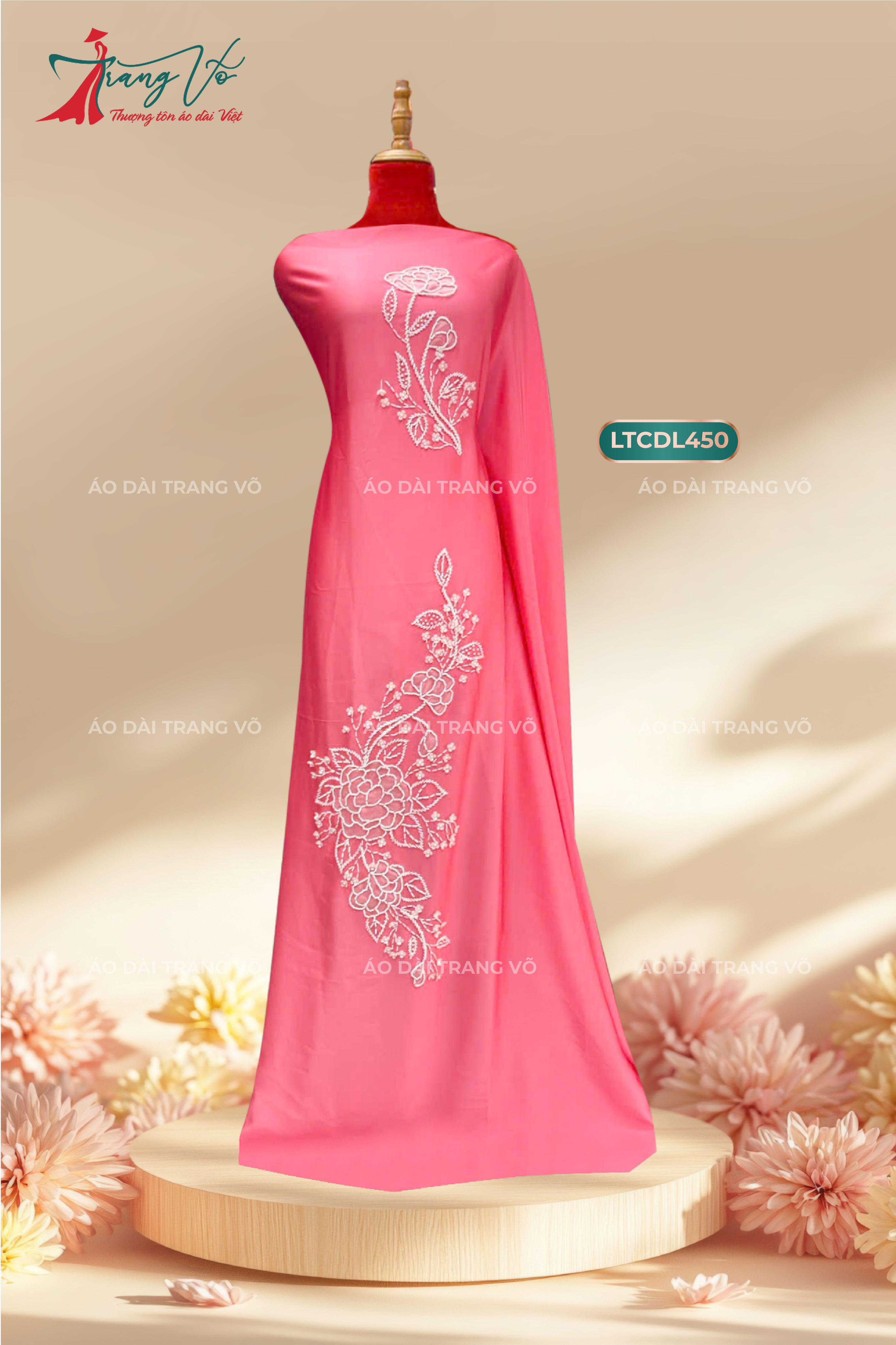 Với chất liệu Lụa Tô Châu cao cấp và chi tiét hoa thêu tay tinh xảo, mẫu vải này mang đến vẻ đẹp sang trọng, nổi bật với hiệu ứng pha lê lấp lánh.